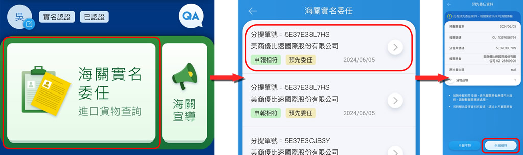 每次貨物通關(海關通關時),會收到EZWay的通知,需到實名委任針對單筆資料點選申報相符。
